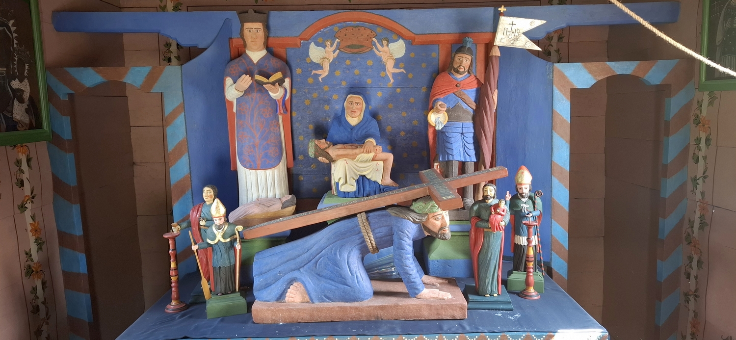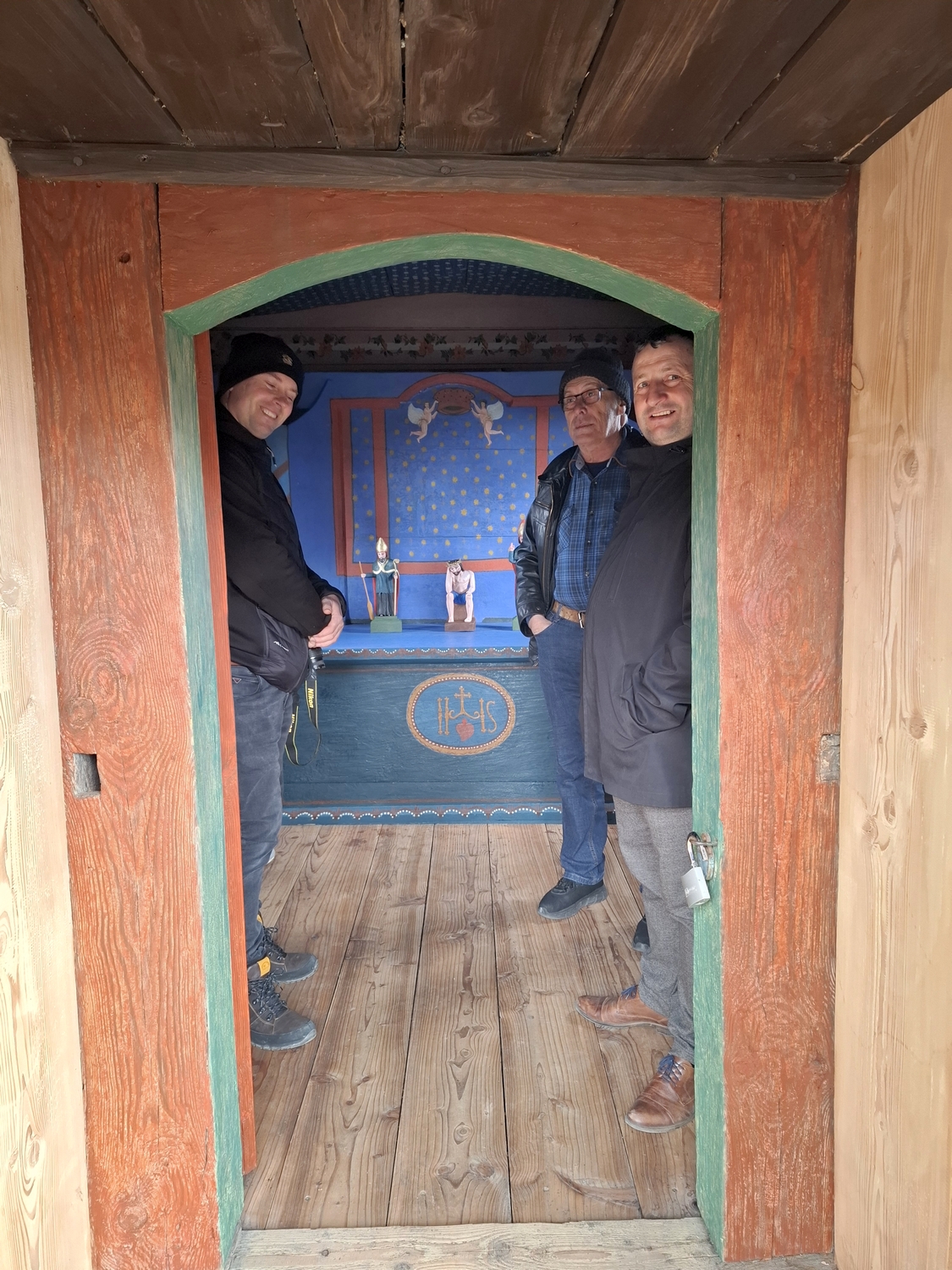 Po odbiorze prac do kapliczki wróciły rzeźby i obrazy, które zostały odrestaurowane przez Stowarzyszenie Przyjaciół Ziemi Sieprawskiej w ramach zakończenia projektu kilka lat wcześniej i pozyskaniu środków w wysokości 19 881,00 zł w ramach grantu pod tytułem „Zachowanie Dziedzictwa Lokalnego na Obszarze LGD Turystyczna Podkowa”. Całkowitej renowacji poddano wówczas 5 obrazów wraz z ramami oraz 7 rzeźb drewnianych i kamiennych.