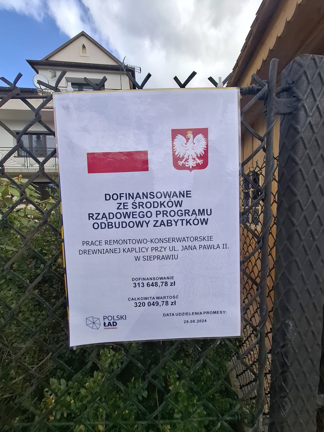 Stowarzyszenie Przyjaciół Ziemi Sieprawskiej, dzięki pozyskaniu dotacji z Gminy Siepraw w wysokości 320 049,78 złotych, przeprowadziło remont zabytkowej kaplicy przy ulicy Jana Pawła II w Sieprawiu. 98% środków pochodziło z Rządowego Programu Odbudowy Zabytków (Polski Ład), natomiast pozostała część dotacji to środki budżetu Gminy Siepraw. W kwietniu br. odebrano i rozliczono wszystkie zaplanowane prace.